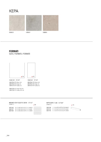 2001747 30 X 30 MOSAICO KEPA 5 X 5 GRIGIO 2001744 7,1 X 60 KEPA BATTISCOPA GRIGIO