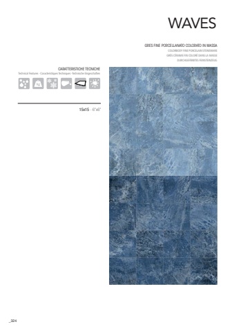 324WAVESGRES FINE PORCELLANATO COLORATO IN MASSA COLORBODY FINE PORCELAIN STONEWARE GR%u00c8S C%u00c9RAME FIN COLOR%u00c9 DANS LA MASSEDURCHGEF%u00c4RBTES FEINSTEINZEUG15x15 - 6%u201dx6%u201dCARATTERISTICHE TECNICHETechnical Features - Caracteristiques Techniques -Technische Eingeschaften