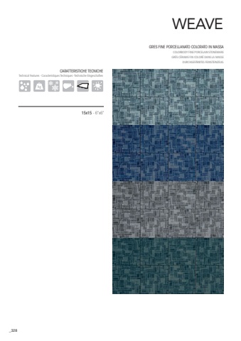 328WEAVEGRES FINE PORCELLANATO COLORATO IN MASSA COLORBODY FINE PORCELAIN STONEWARE GR%u00c8S C%u00c9RAME FIN COLOR%u00c9 DANS LA MASSEDURCHGEF%u00c4RBTES FEINSTEINZEUG15x15 - 6%u201dx6%u201dCARATTERISTICHE TECNICHETechnical Features - Caracteristiques Techniques -Technische Eingeschaften